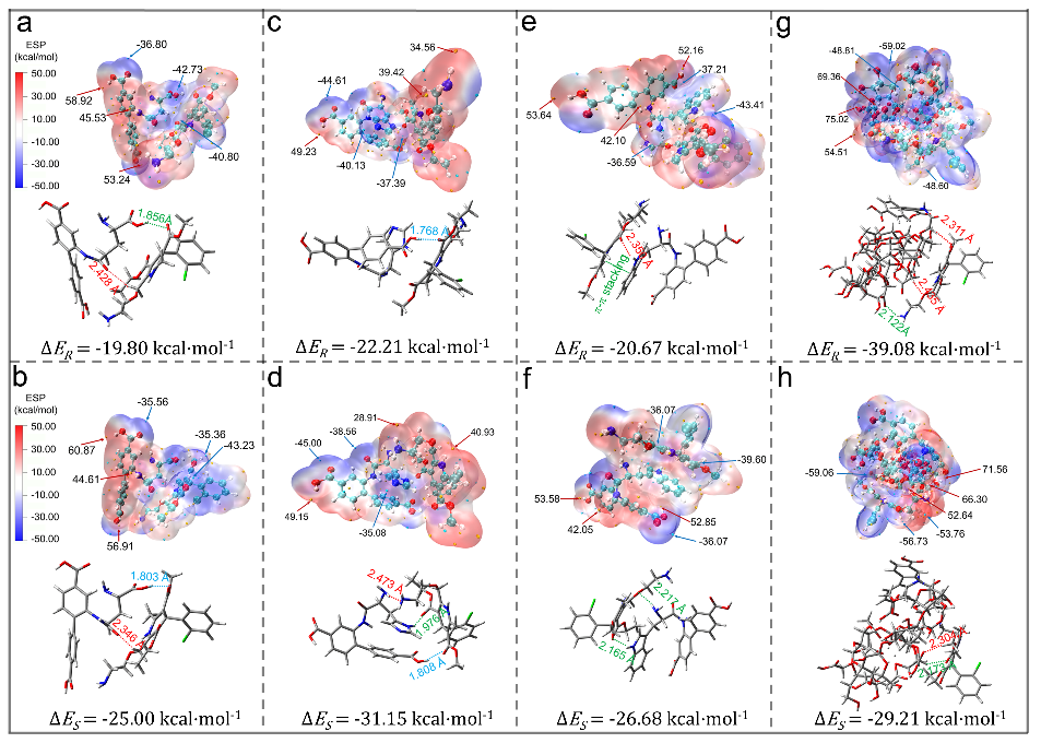 Homochiral metal-organic frameworks (HMOFs) have been reported as versatile platforms for chiral separation in recent years. However, achieving effective separation of chiral drugs with high molecular weights and intricate stereochemical configurations remains exceptionally rare, despite the significant application value and technical challenges associated with separating such drugs. Conventional MOFs are often constrained by their microporous structures, which restrict the diffusion and chiral recognition of bulky drug molecules. This limitation has spurred the interest in hierarchically porous MOFs (HPMOFs) as a novel research direction to address these challenges. In this study, the research group innovatively employed a high-intensity ultrasound-assisted controllable aqueous treatment strategy to precisely modulate the hydrolysis process of DUT-5-NH2. Meanwhile, via post-synthetic modification techniques, both chiral amino acids and carboxymethyl-β-cyclodextrin (CM-β-CD) were grafted onto the frameworks, enabling the successful construction of enantioselective hierarchically porous homochiral metal-organic frameworks (HPHMOFs). These multifunctional materials exhibit exceptional structural stability and recyclability while integrating three distinct resolution modalities: adsorption-based selectivity, solid-phase extraction, and chromatographic column separation. The HPHMOFs demonstrated robust chiral recognition capabilities for multiple drug enantiomers, underscoring their versatility and efficiency in addressing complex separation demands. Molecular dynamics simulations and quantum chemical calculations revealed that the chiral recognition process is governed by the synergistic host-guest interactions, including weak interactions like hydrogen bonding, van der Waals forces, steric effects, and the stereochemical selectivity imparted by grafted molecules. Notably, the spatial arrangement, bond multiplicity, and interaction strength of hydrogen bonds played a dominanct role in enantiomer separation performance. Theoretical calculations further clarified the molecular mechanism underlying the superior enantioselectivity of CM-β-CD-functionalized HMOFs exhibit the best enantioselective separation ability among the four types of HPHMOFs. It is particularly noteworthy that the differences in adsorption energy and interaction energy between HPHMOFs and drug enantiomers are in good agreement with their chiral separation abilities. This research successfully achieved the enantioselective separation of macromolecular chiral drugs (with a molecular weight exceeding 300 Da) by HPHMOFs for the first time, providing theoretical support and a methodological framework for expanding the application boundaries of chiral separation materials.
