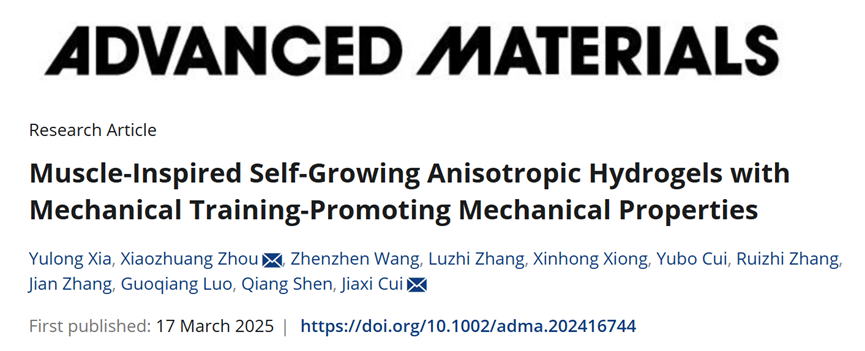 ZhouXiaozhuang, a Young Faculty Member at Our School Publishes Paper Titled Muscle-Inspired Self-Growing Anisotropic Hydrogels with Mechanical Training-Promoting Mechanical Properties in Advanced Materials