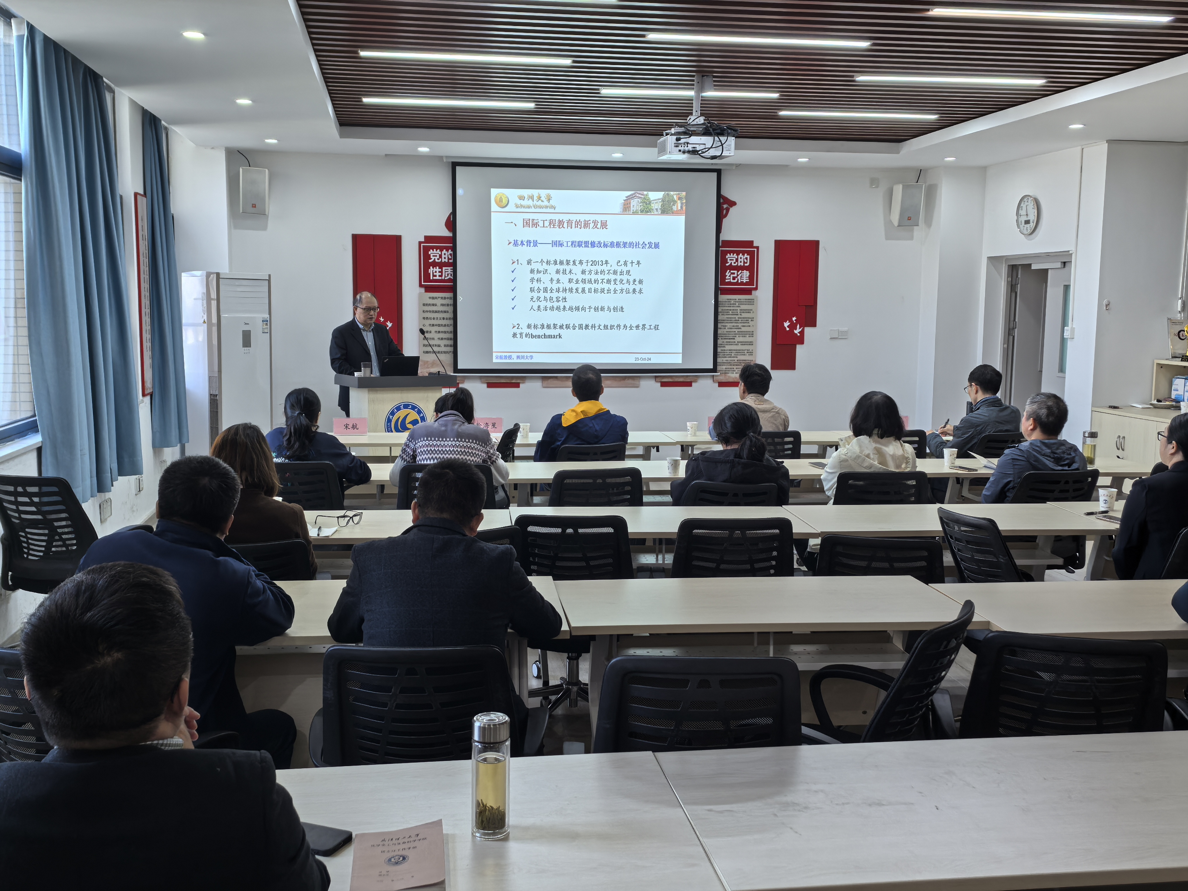10月24日上午,为迎接制药工程专业教育认证,TapTap邀请了四川大学教授、中国工程教育认证化工与制药分委会认证核心专家宋航教授来公司进行了《国际工程师能力新要求及我国工程人才培养的思考》讲座。公司党委书记韩同远,副经理沈雷、夏涛,制药工程系主任徐海星及教师代表参加了讲座。