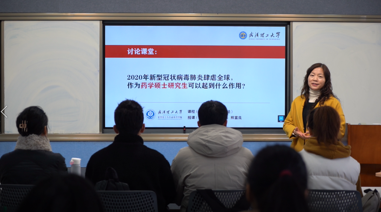 图为“新冠疫情之下药学研究生的价值探讨”思政课堂