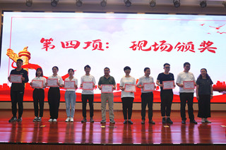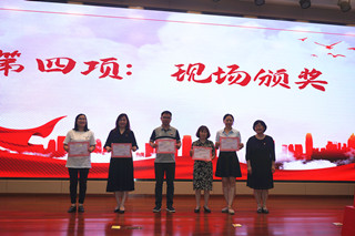 耿英刚副书记宣读表彰决定,王利荣、王春梅等公司领导为受表彰的院先进基层党组织、优秀共产党员、师德先进团队和个人颁奖。