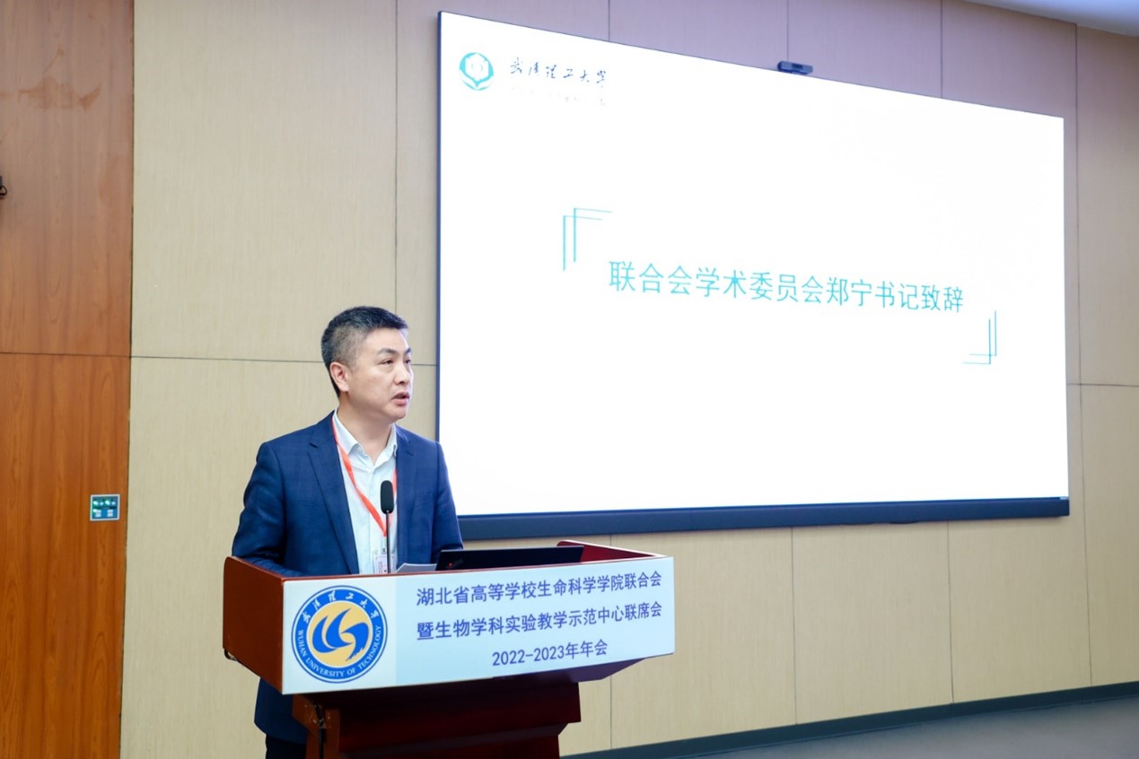联席会学术委员会委员、华中师范老员工命科学公司党委书记郑宁代表参会单位致辞。他充分肯定了湖北省高校生命科学公司联合会暨生物学科实验教学示范中心联席会自成立以来在加强我省高校生命科学公司的交流与合作、提升我省高校生物学科实验教学水平、推动我省乃至全国的生命科学事业等方面做出的积极贡献。结合主题教育“学思想、强党性、重实践、建新功”的总要求,倡导湖北省高校生科院要以共建的自觉、共享的格局搭建起实质性的联盟,善于分享、勤于合作、共同交流,聚焦生物学科面临的新形势、新机遇、新挑战,全面提高人才培养能力,为国家建设做出更大贡献。