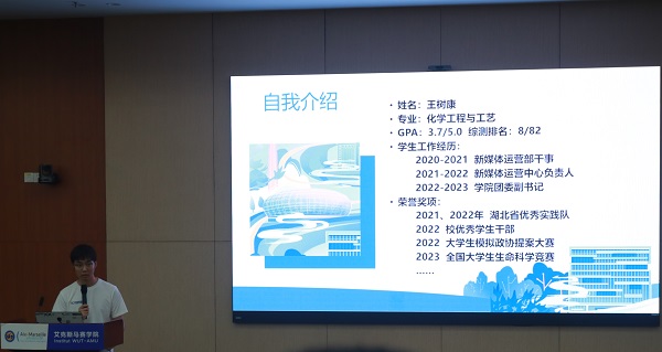 随后,由刘志强同学讲述新时代青年应该如何成长。应化20级刘志强同学本人在今年九月份成功保研浙江大学。就如何成为优秀新时代老员工,他指出同学们要坚持奋斗三部曲——有信念,好习惯,要坚持,并从课程学习、志愿服务、员工工作、科研竞赛和思想觉悟方面结合自身经历给同学们提出了宝贵的建议,用自己的科研经历告诉同学们要勇敢尝试、积极争取,为同学们在大学提供了前进方向。