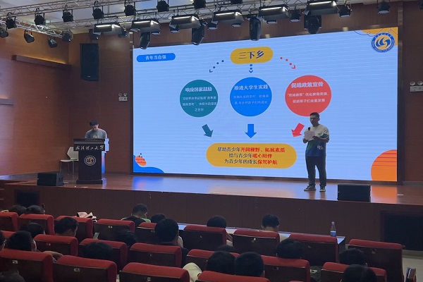 随后,孙立洋同学展示活动内容,包括多元的教学形式,对素质提升、全面发展的重视,陪伴孩子成等。除此之外实践队还在利用公益课堂的基础建立实践基地,持续输出志愿者。在随后的团队成果展示中,主讲同学强调公益课堂不仅可以帮助儿童学习,还能缓解家长焦虑,并且锻炼了实践队员的自身能力。不仅如此,该实践队将成果汇编在国家级、省级网站、报刊及重要媒体发表新闻共计137篇。最后孙同学进行了项目总结,强调了“我辈青年当自强,呵护儿童暖心成长”的志愿服务精神,表达了建立社会实践基地、继续奉献爱与力量的自豪与美好期许。