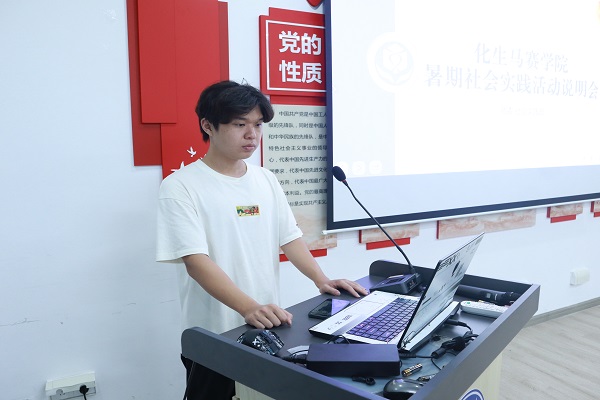团委社会实践部负责人谭肯向各参会团支书介绍本次实践的通知及指导文件。着重说明了本次实践活动的八个重点专项:理论普及宣讲团、百岗行动实践团、科技强国逐梦团、乡村振兴促进团、发展成就观察团、民族团结实践团、流域综合治理调研团以及共同缔造青年助力团。他特别向各位团支书说明了各种开展实践活动的可能形式并强调了举行实践活动的各项注意事项。