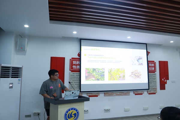 省级优秀实践团队——“赋能中药产业,助力乡村振兴”暑期社会实践队队长任重为同学们分享了团队的成功经验。他提到,实践队要结合专业特色,提高队伍竞争力,从小处入手,以小见大,关注细节,丰富活动内容和开展方式。同时,他也详细向同学们介绍了新闻投稿的各种途径和方式,祝愿同学们本次实践活动圆满安全。