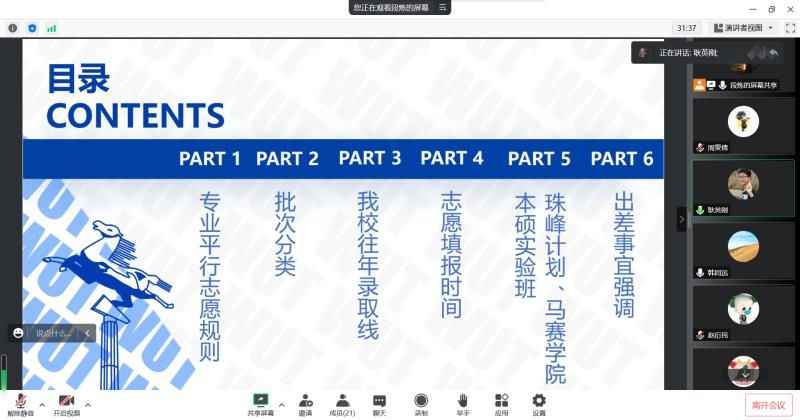 耿英刚副书记在会上介绍了山东省专业平行志愿规则和批次分类、各批次录取的相关规定及近两年公司在山东省招生录取情况,以帮助宣传组人员更好的了解山东省招生政策和录取情况。