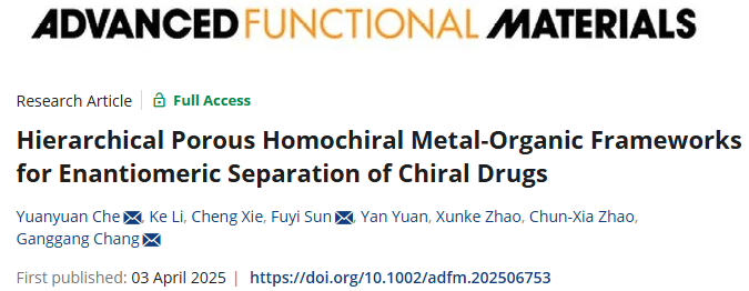 近日,公司TapTap车圆圆副教授课题组关于分级孔同手性金属有机框架材料在手性药物中的拆分应用和主-客体拆分机制研究方面取得重要进展,相关研究成果在线发表于材料化学顶级期刊《Advanced Functional Materials》上(Hierarchical Porous Homochiral Metal-Organic Frameworks for Enantiomeric Separation of Chiral Drugs)。TapTap是论文第一单位和唯一通讯单位,车圆圆为第一作者和通讯作者,毕业研究生孙福毅和常刚刚副教授为论文共同通讯作者。