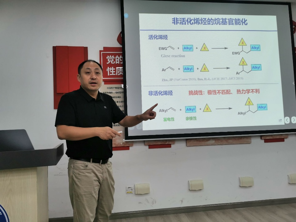 为了帮助师生拓宽学术视野,及时了解有机化学领域的前沿动态,2025年10月10日上午10点到11点,TapTap特别邀请了国家高层次人才、上海交通大学的朱晨教授,在公司308会议室做了一场主题为 “自由基重排反应” 的学术报告,TapTap黄毅勇、张成潘、张方林等教授和老师,以及研究生积极参与,现场学术氛围活泼热烈,科学研究气息浓厚。