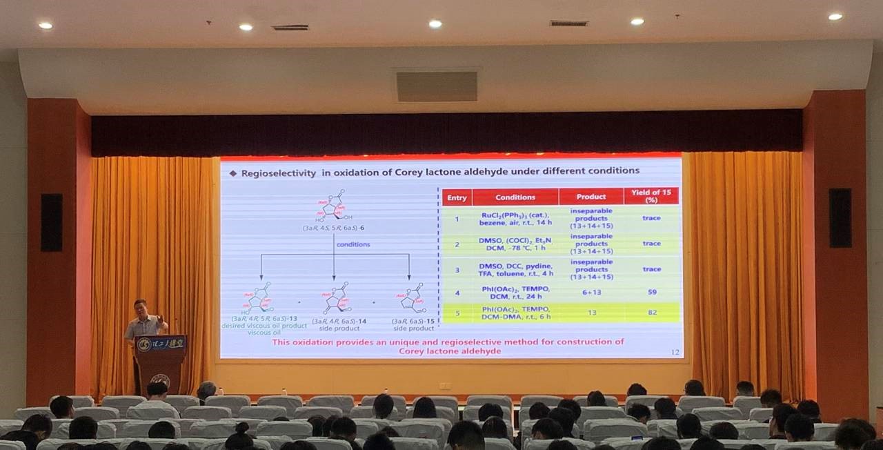 报告中,陈院士向大家分享了其研究团队近五年来在前列腺素药物合成领域的突破性进展,先后发展了高效的不对称有机催化和生物催化两种途径来提高药物产率,并结合连续流化学技术,完成了数个关键前列腺素药物的不对称全合成。