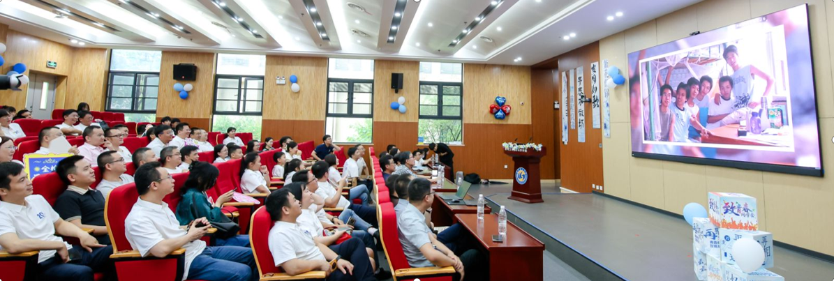 05届全体返校员工在化生大楼报告厅隆重举行毕业二十周年主题班会。会议由员工代表主持。会议上经理向员工们介绍了公司近年发展情况、历程及取得的科研成果。与会员工通过重温点名、观看记载青春岁月的电子相册,共同追忆美好的员工时光。公司老师再次走上讲台为员工送上寄语,勉励大家自信前行,并欢迎员工常回母校。