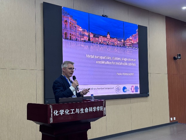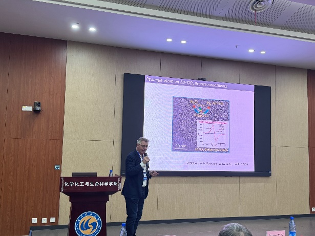论坛第二部分由新加坡工程院院士John Wang教授主持。来自意大利的里雅斯特大学的欧洲科公司院士Paolo Fornasiero教授以“金属纳米粒子-团簇、单原子及其可持续催化”(Metal nanoparticles, clusters, single atom or combination for sustainable catalysis)为题,详细介绍了金属纳米材料在催化领域的应用与挑战。
